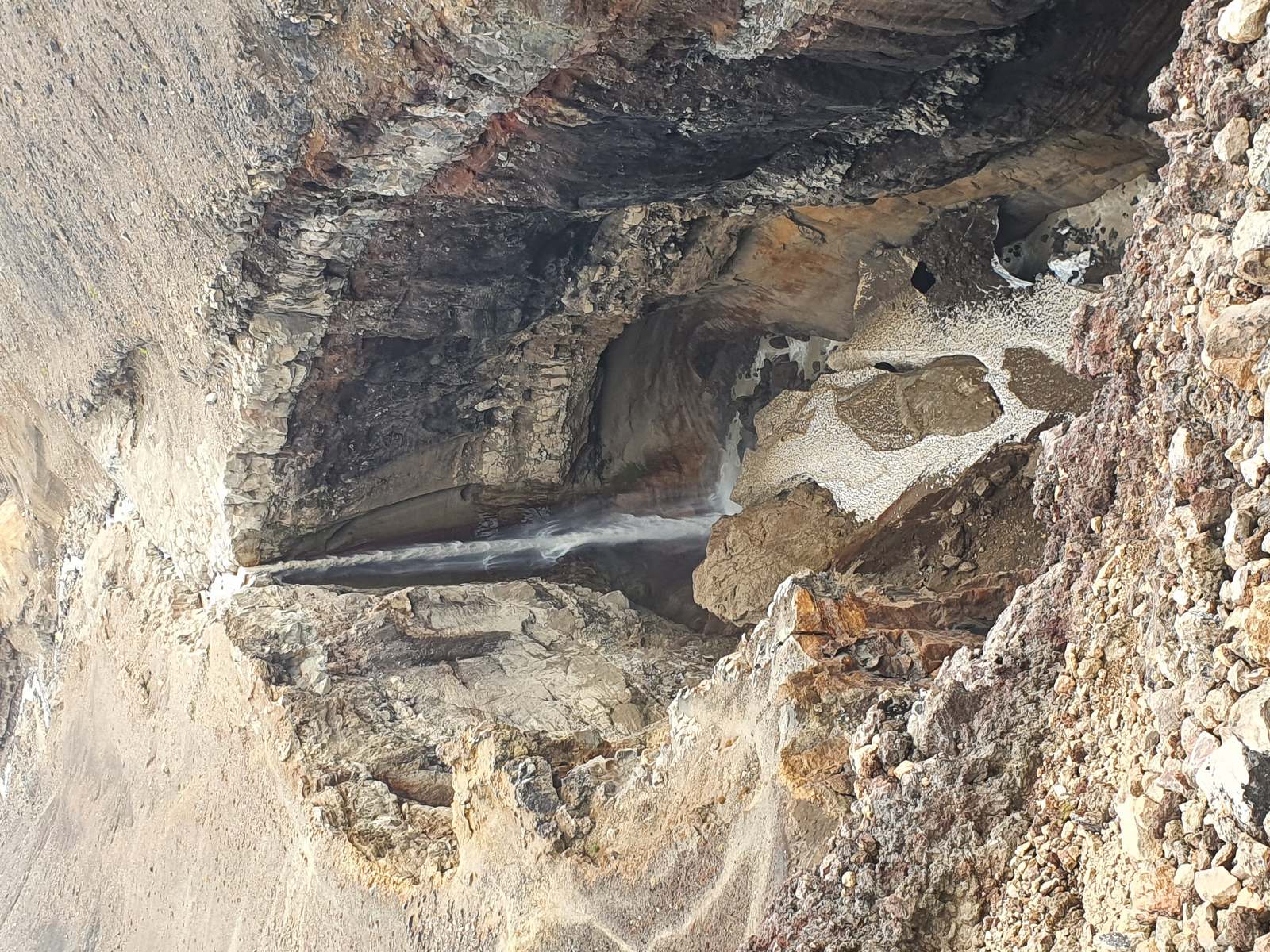 Долгое время никому не удавалось подойти к его подножью, скрытому многолетней массой снега. Но летом 2016 г. «вечный» снежник, скрывающий нижний уровень водопада, растаял, обнажив исполиновый котел, выбиваемый струями воды.